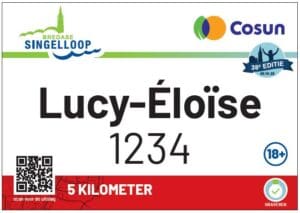- Startnummer met vermelding van de voornaam van de loper, inclusief chip